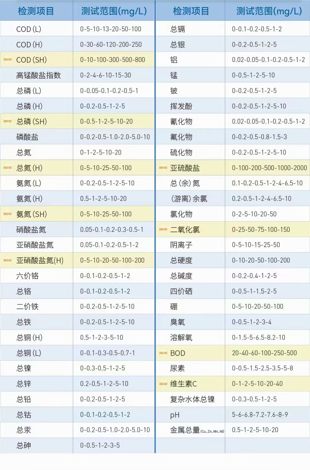 ④、種類齊全:65款常見水質(zhì)污染物等, 檢測項(xiàng)目多, 檢測范圍廣;