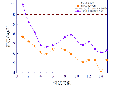 2.由于反硝化脫氮過程集中設置在反硝化濾池,出水總氮極易受到進水水質、水量等影響從而出現較大波動,出水總氮達標不能得到保障。